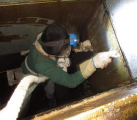 3.在人工無法進(jìn)入而且拆卸較為困難的油煙管道,可以使用開孔的方法,在油煙管道上面鑿一些小孔,通過小孔對(duì)管道內(nèi)里進(jìn)行清洗,然后對(duì)每個(gè)小孔進(jìn)行密封處理。